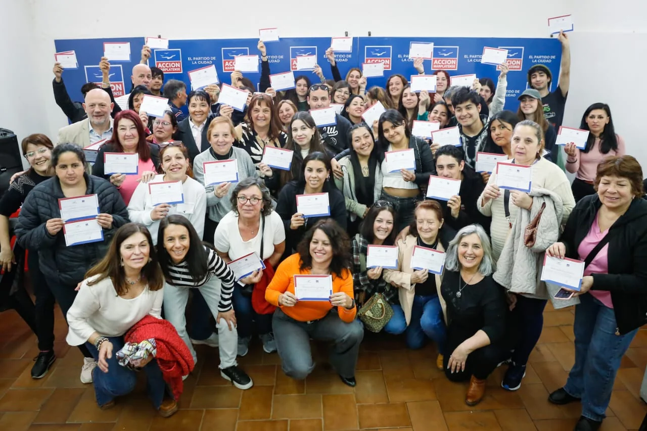 La entrega de certificados se realizó el sábado en la sede de Acción Marplatense, donde recibieron su diploma más de 450 personas que finalizaron el segundo ciclo de cursos gratuitos del año en ofertas como manipulación de alimentos, manicuría, barista, inglés inicial, construcción en seco, mecánica de bicicletas, cocina saludable y cuidados domiciliarios orientado a demencia, entre otros.