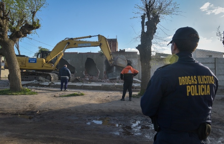 El Municipio de General Pueyrredon -a través de personal de la Secretaría de Seguridad, el EMVIAL y Defensa Civil- derribó este miércoles dos edificaciones que funcionaban como búnker que comercializaba drogas ubicadas en la zona de Azopardo al 11100 del barrio Belgrano. Además, se contó con el apoyo de personal de la Delegación de Drogas ilícitas, DDI, y de la Comisaría 11ra de la PDS Departamental.