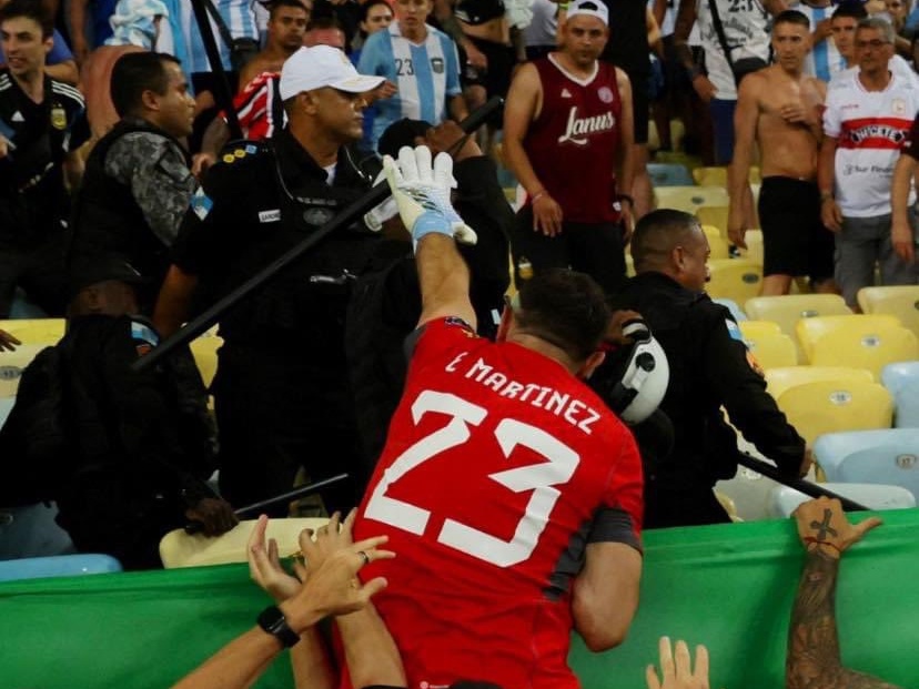 En medio de los graves incidentes que ocurrieron en la previa del clásico sudamericano entre Brasil y Argentina en el estadio Maracaná, el arquero Emiliano «Dibu» Martínez mostró valentía al intentar frenar la represión policial dirigida hacia los hinchas argentinos.