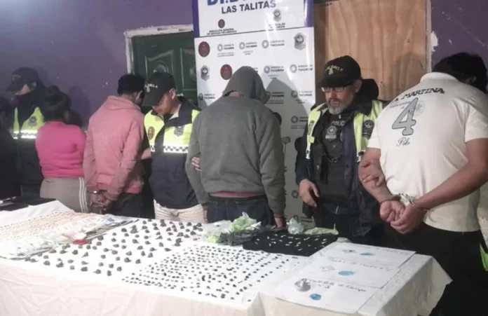 “Por la tarde, en el Barrio 11 de Enero, personal de la Didrop Norte Las Talitas detuvo a “Loco Pila Martínez”, quien es conocido con un frondoso prontuario. Allí se incautaron más de 300 ravioles y bochitas de cocaína, casi 100 envoltorios de picadura de marihuana, balanzas de precisión, dinero de efectivo y elementos vinculados al fraccionamiento”, detalló Nacusse refiriéndose a las medidas realizadas en Yerba Buena, donde hubo en total cinco personas detenidas, entre ellas dos mujeres.