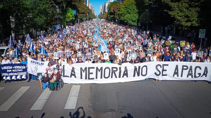 Entre las voces presentes en la movilización, Irene Molinari, Madre de Plaza de Mayo, resaltó la importancia de la memoria, la verdad y la justicia como pilares fundamentales para la libertad y la garantía de los derechos humanos. «Sin memoria, sin verdad y sin justicia no existe la libertad. Es importante que estemos en la calle diciendo no al avasallamiento sobre nuestros derechos humanos, que incluyen la educación, la vivienda y la distribución de la riqueza», expresó.