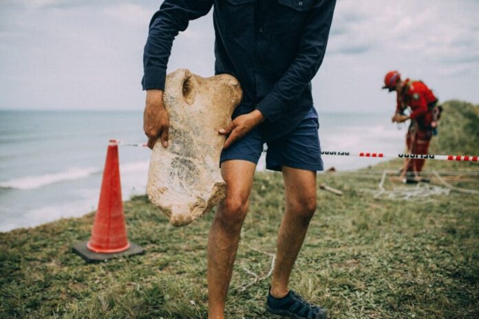 En los acantilados costeros del sur de Mar del Plata, se llevó a cabo un rescate paleontológico en altura que marca un hito en la región. El hallazgo corresponde al fémur de un perezoso terrestre gigante, una especie denominada Catonyx, que rara vez aparece en los registros paleontológicos locales.