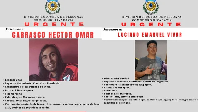 La policía local, a través de la División de Búsqueda de Personas de Comodoro Rivadavia pidió la colaboración para encontrar a los hombres ya que Vivar fue visto por última vez en la zona del kilómetro 8, mientras que Carrasco tuvo un último contacto cuando se ausentó de su vivienda en el barrio Máximo Abásolo, en el sur de la ciudad.