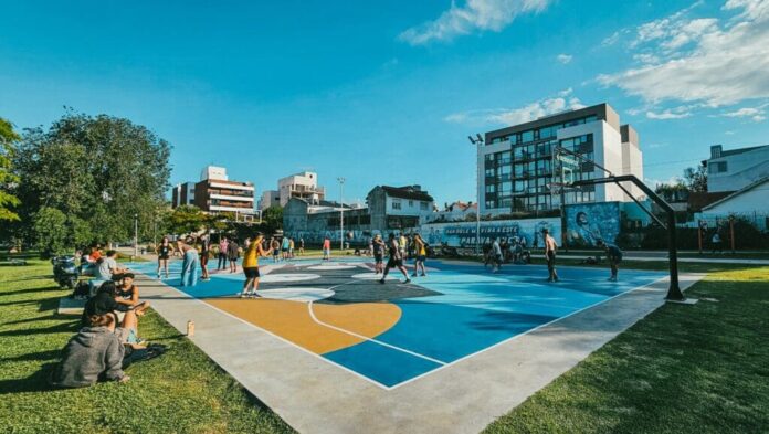 Las tareas incluyen la mejora integral de la cancha, colocación de nuevos aros de básquet y la pintura del playón deportivo, además del reacondicionamiento de las jirafas mediante pintura epoxy y diferentes arreglos del equipamiento urbano.