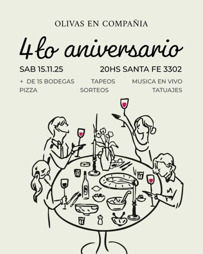 La agenda gastronómica de Mar del Plata suma un evento de relevancia para mediados de noviembre. Olivas en Compañía, un referente local en la promoción de la cultura del vino y la cocina de tapeo, anuncia la celebración de su cuarto aniversario con una gran convocatoria. La cita es el sábado 15 de noviembre de 2025 a las 20:00 horas en su sede de calle Santa Fe 3302.