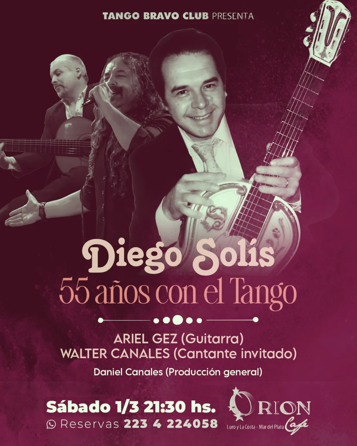 El Tango Bravo Club inaugura el fin de semana de carnavales con un espectáculo de lujo: el icónico cantante Diego Solís celebra sus 55 años de trayectoria en el tango, acompañado por el virtuoso guitarrista Ariel Gez y el destacado cantante invitado Walter Canales. Bajo la producción general de Daniel Canales, la velada promete ser un viaje por los clásicos y las innovaciones que han marcado la carrera de Solís.