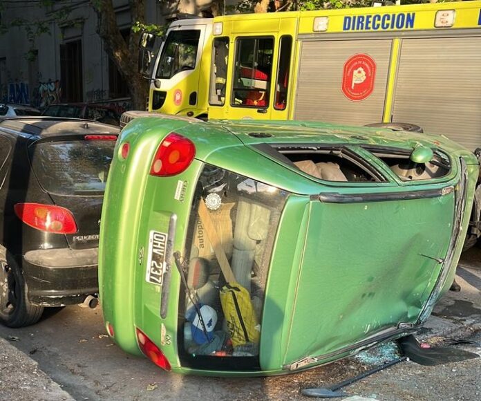 Impactante choque en el centro de la ciudad deja a un menor atrapado en un vehículo volcado