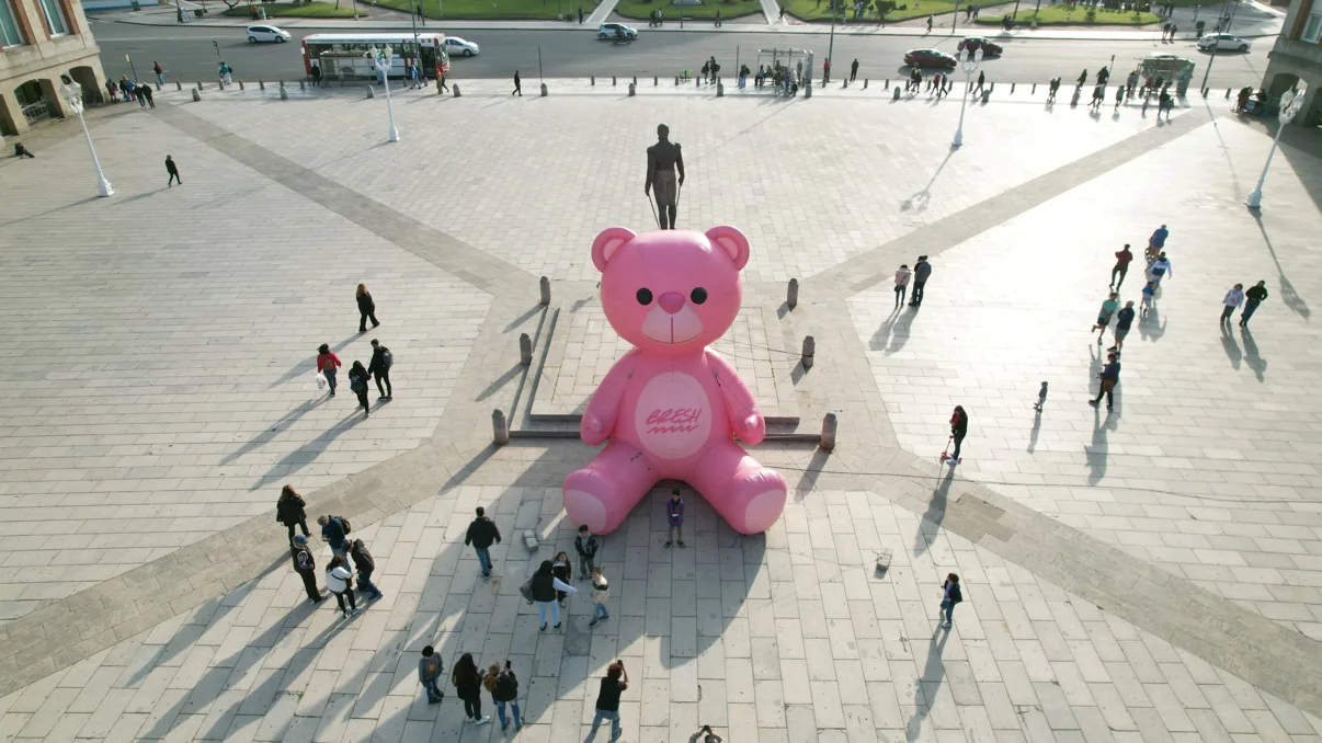 La Rambla marplatense se ha visto sorprendida por la aparición de «Breshito», el famoso oso inflable rosa, anticipando la Fiesta Bresh que se llevará a cabo el próximo sábado 12 de octubre en el Estadio Polideportivo «Islas Malvinas».