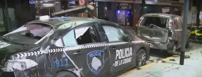 Según el parte policial al que accedió la Agencia Noticias Argentinas, el hecho se dio en la noche del jueves cuando, tras impactar contra el vehículo en el que circulaban los delincuentes, el patrullero chocó contra un Chevrolet Meriva que se encontraba estacionado en las calles Piedras y Brasil y luego volcó.