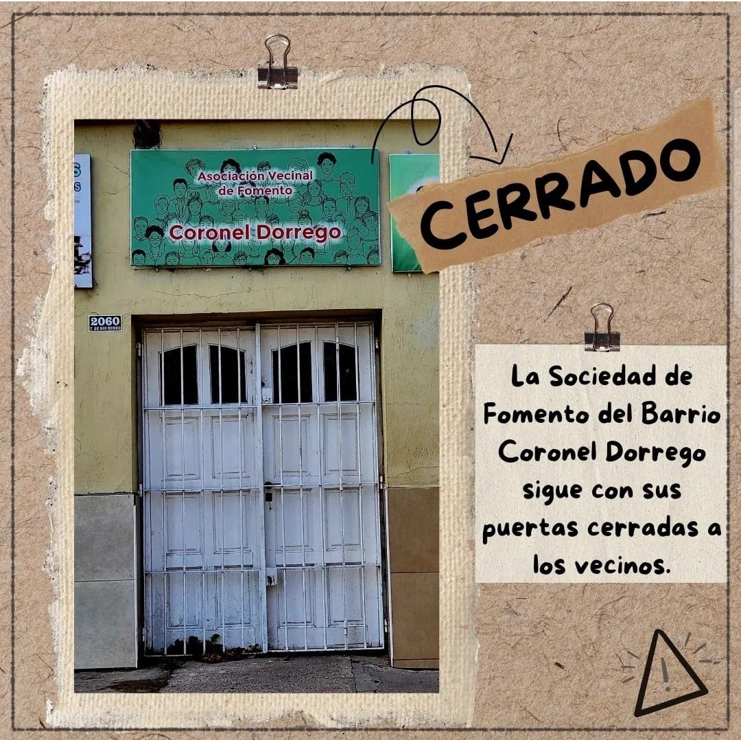 Los vecinos del barrio Coronel Dorrego han convocado a una reunión para el próximo martes 2 de julio a las 18:30 horas frente a la Sociedad de Fomento local, ubicada en Termas de Río Hondo 2060. El motivo de la convocatoria es abordar la compleja situación que atraviesa la institución barrial.