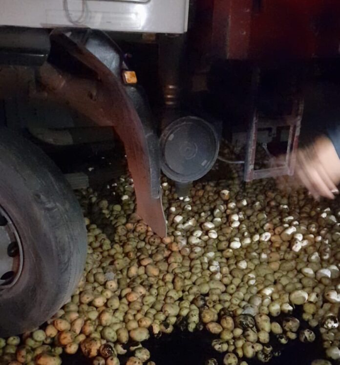 El fuerte choque ocasionó que una importante cantidad de papas terminara esparcida sobre la cinta asfáltica, dificultando enormemente el tránsito en la zona. Rápidamente, efectivos del cuartel de Bomberos de Batán y miembros de la fuerza policial provincial se hicieron presentes para asistir la emergencia.